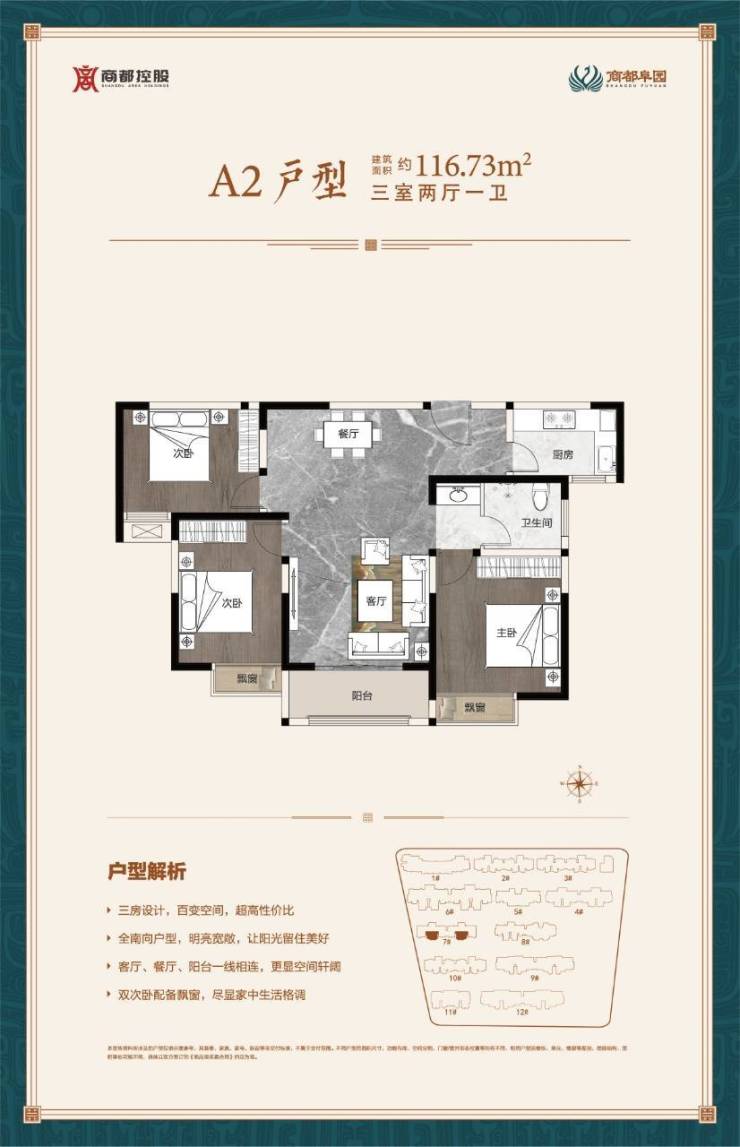 精研户型,以合理的空间配比打造建筑面积约52-144㎡的全系产品,满足不同人群的居住需求,整体设计以梦回商代历史情怀和复兴传统审美价值观为归旨,营造一种商韵流淌,境出雄浑的空间意境。