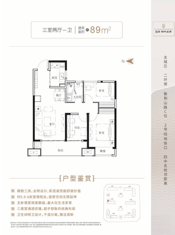 舒阔户型基因:所有户型均秉承方正通透、布局合理的基因为前提,部分户型采用奢阔横厅、270°环幕视野及套房式主卧等设计,确保居住的舒适度与空间感。