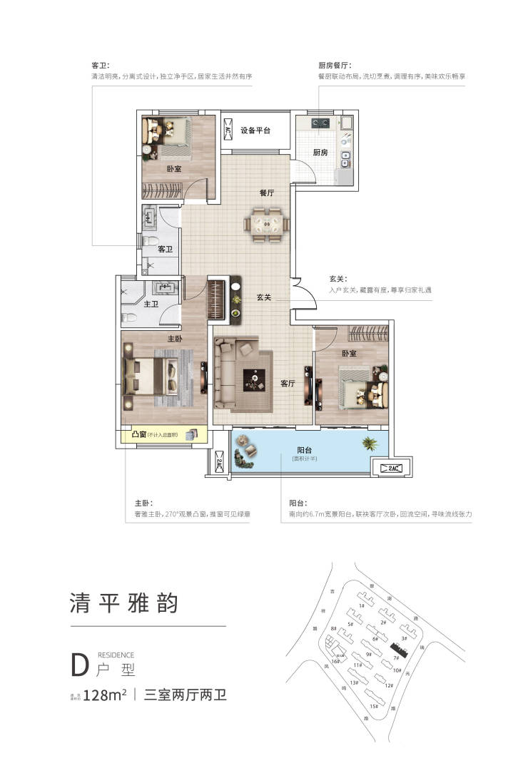 35%绿地率,高氧分植被覆盖,俯仰之间,步步皆景 。进阶绿色美好人居,新风·雾森·灭蚊·直饮水系统等360°智能科技加持,关照日夜,让居住更自在舒雅、健康。