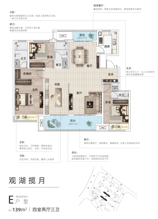 1梯2户,南北通透,面积约135㎡和140㎡,四室两厅两卫,超低公摊,三卫双套房设计,犒赏人生进阶;约6.8m宽厅设计,南北双阳台,重拾生活浪漫。