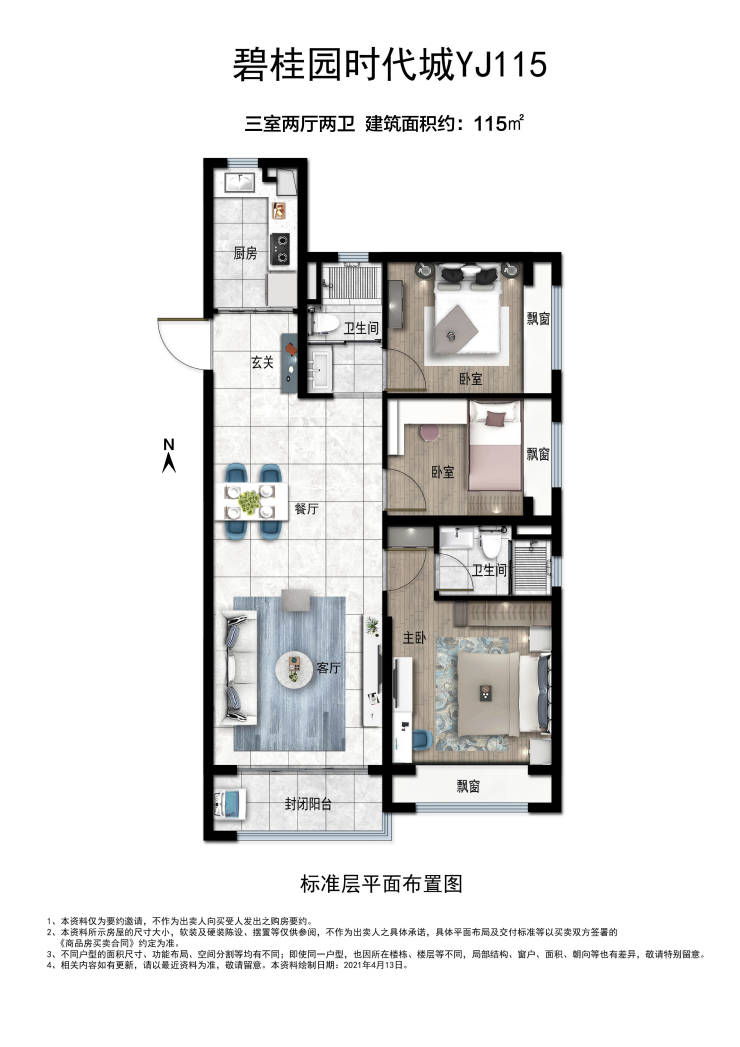 建面约89㎡/115㎡户型 (三室两厅):全系户型均为南北通透的阔景三房,格局方正,功能分区明确。带装修交付标准,统一选材与施工,既保证品质又省心省力。