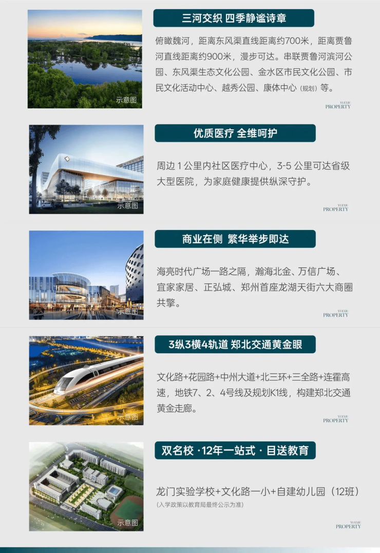 项目占据金水北优越区位,周边教育、交通、商业、生态及医疗资源高度密集且能级突出,满足高品质家庭的全维度生活需求。