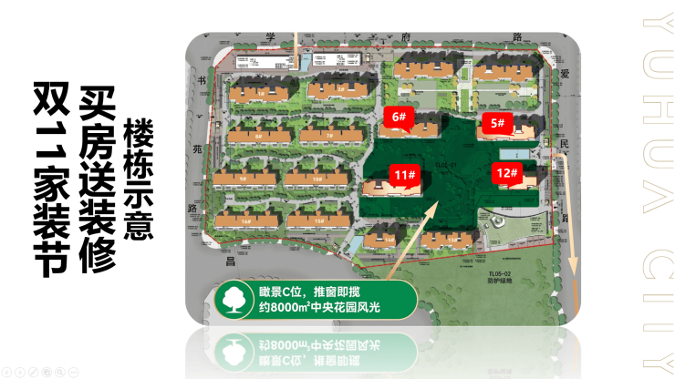 观景楼王6号楼89-115㎡和11/5/12号楼央景C位热销加推,俯瞰社区约8000㎡社区中央景观,在售89㎡,115㎡,132㎡,143㎡。