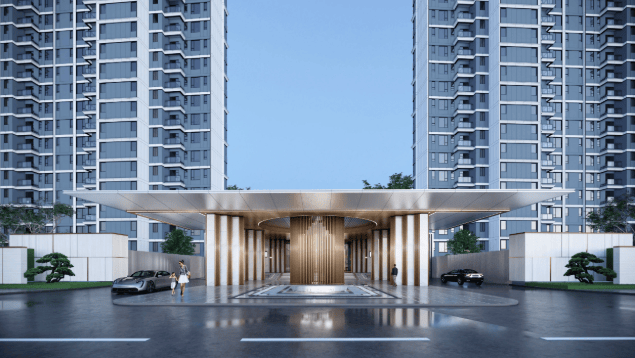 项目以现代顶豪美学标准打造建筑形象,并通过景观设计将外部湖景与内部园林无缝衔接。
