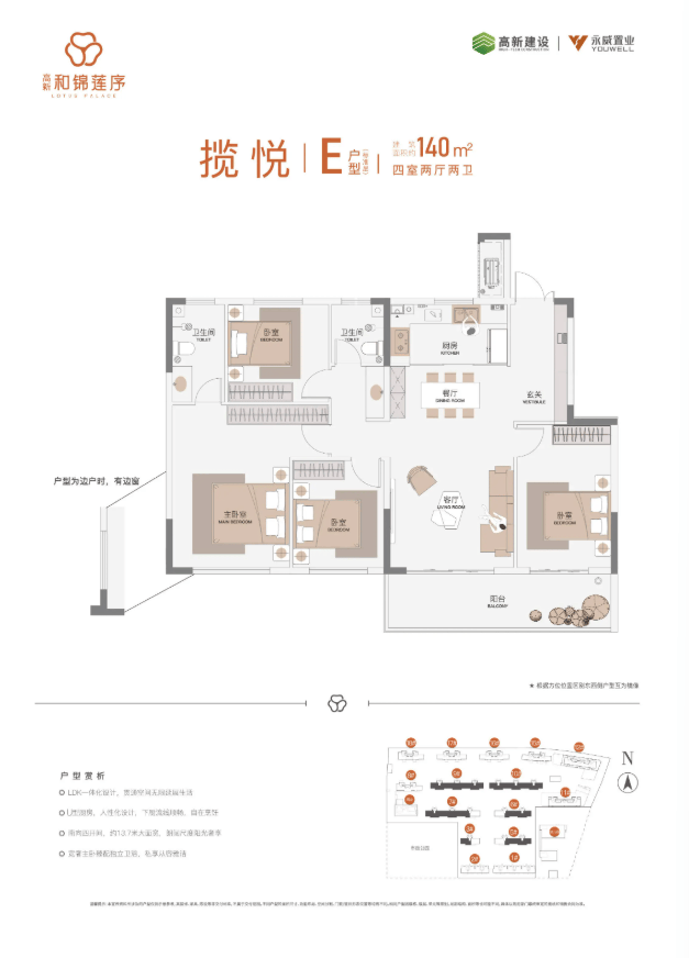高新·和锦莲序由高新建设集团与永威置业双强联袂打造,坐落于国家高新区千亿科技城。项目总建面约16.84万方,容积率约2.49,规划7栋高层+8栋洋房共1102户,为毛坯现房交付。作为永威操盘的“洋房专家”作品,项目以约30米+楼间距、永威精细化物业服务及 “3河2湖8公园” 生态资源为核心,以匠心品质敬献高新品质人居。