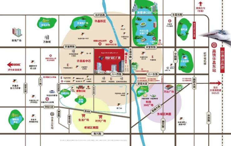 【恒达·金汇广场】坐拥八一路、天宝路双主干道,畅达全城。紧邻汽车站、火车站,无缝对接京港澳、郑尧高速,许昌候机楼、高铁站,出行无忧。
