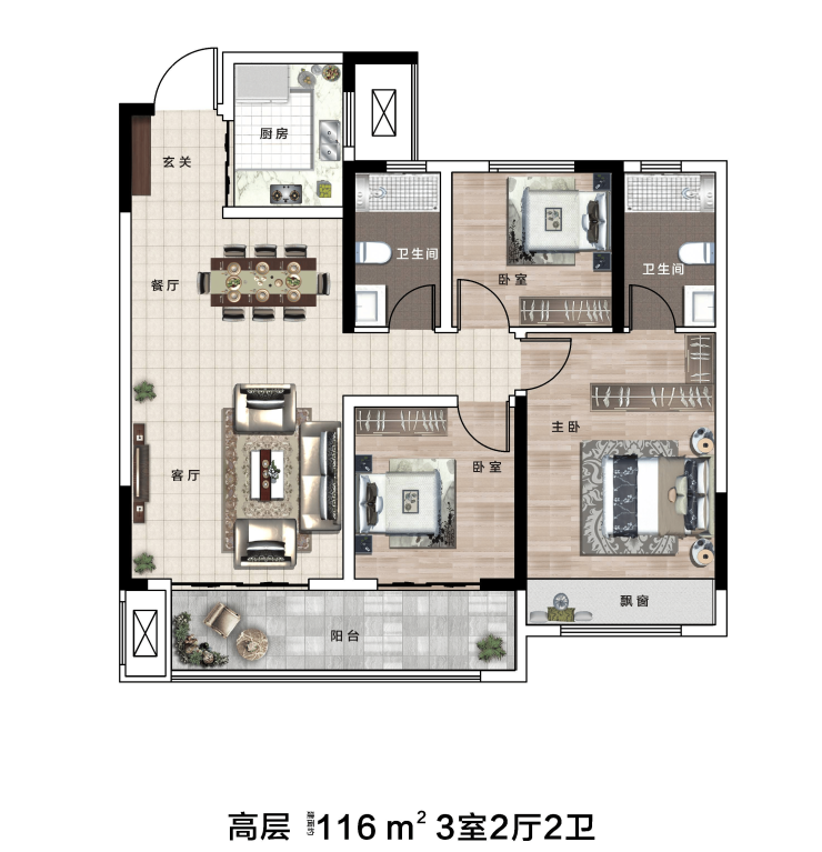 三开间朝南·客餐厅连南向观景阳台·全明双卫·通透方正,一经推出,即受到客户的追捧。