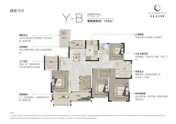 项目凭借绿城强大的产品力,通过高赠送实现实际得房率高达90%,户型设计兼具功能性与舒适度。