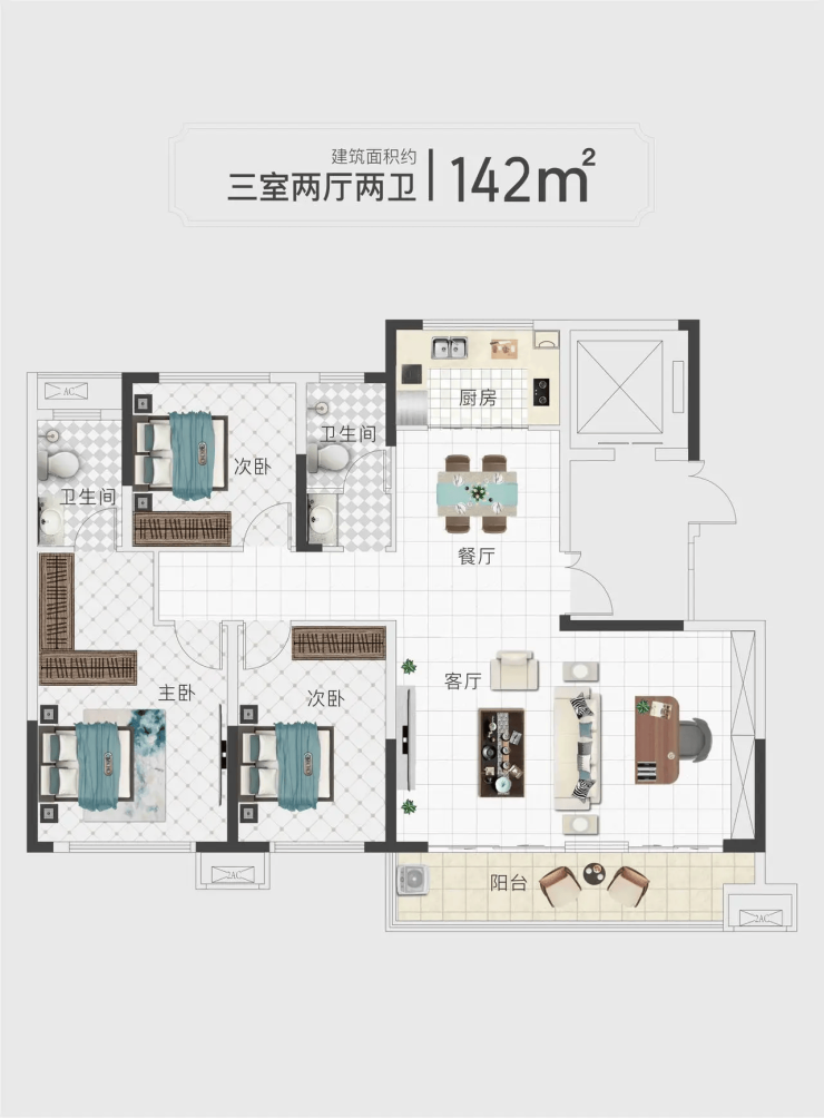 纯粹圈层:全系户型仅设127㎡、137㎡、142㎡三款,均为大三房/四房格局,精准锁定城市精英改善需求,确保社区圈层高度纯粹。