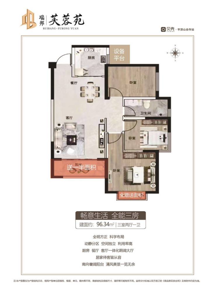 6、南城绝佳好户型,96.3全采光三房,116.6南北通透全明三房。
