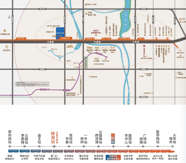地铁10号线便捷出行:项目距地铁10号线柳湖站约800米,1站即达四大中心,4站直达中原万达,并可换乘1号线、5号线、14号线,通勤高效。