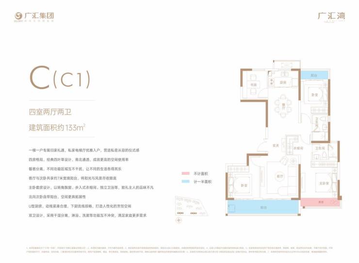 梯户比:106/123平 2T4 133/141平方米 2T2